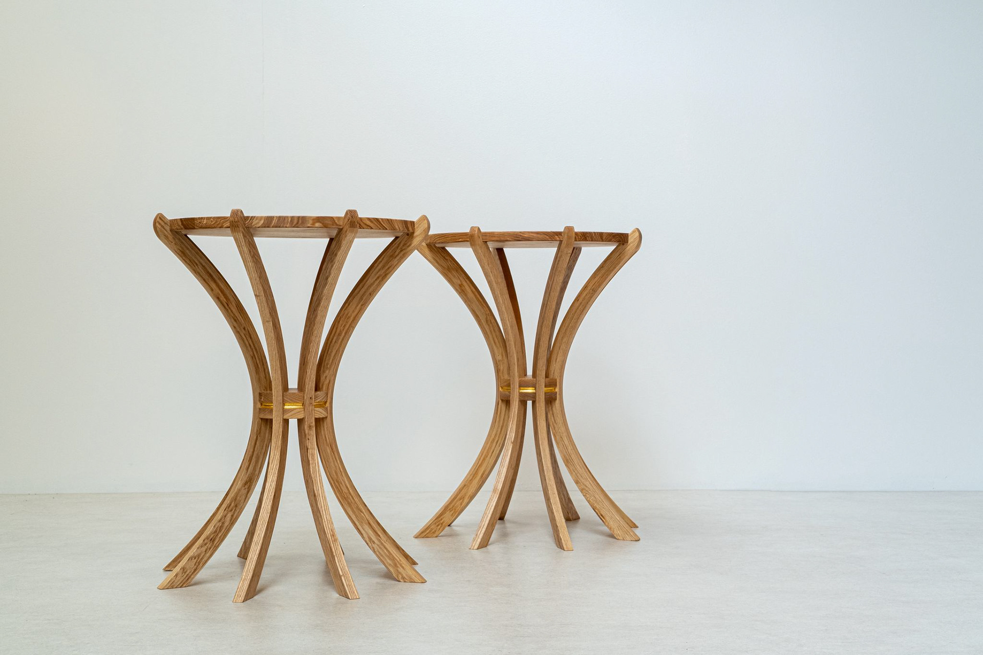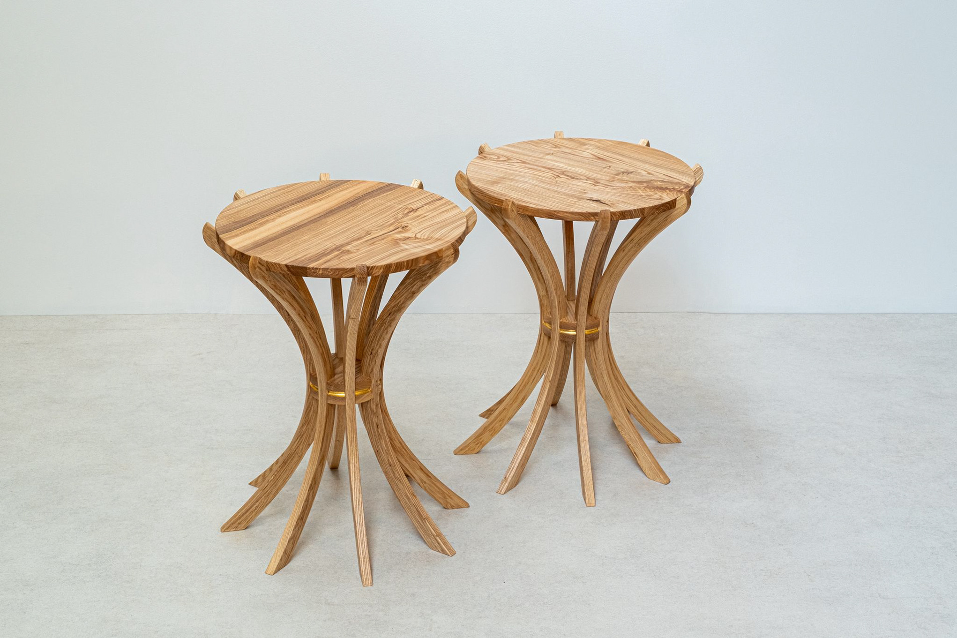 Two Olive Ash side tables with a 23.5k gold banding I recently finished at C